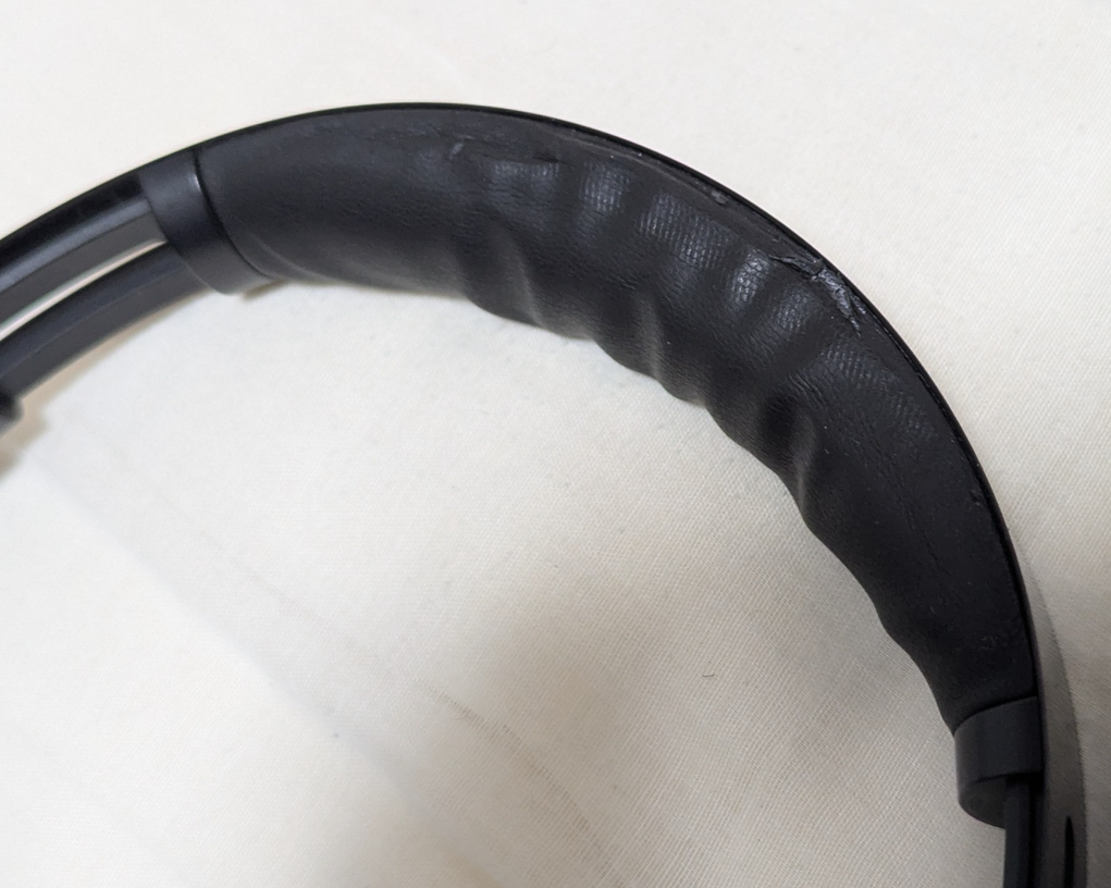 その後、さらに1年以上経過して再度イヤーパッドが破れました。 継ぎ目が接着剤かなにかで止めてある簡素な構造なので、どうしてもこうなる運命のようです。言ってしまえばそういう設計ですね。 これが設計ミスなのか、コスト削減のための意図的なものなのかはよくわかりません。 幸い、イヤーパッドはAmazonなどで代替品が1,000円くらいで手軽に購入できるので致命的ではないですが…。